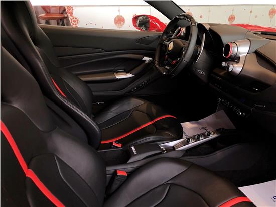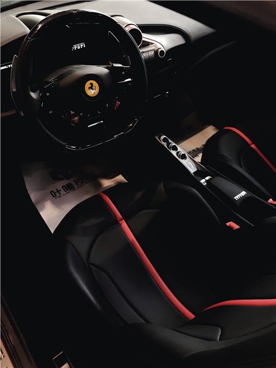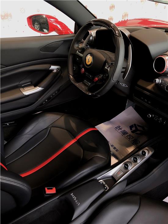 內(nèi)飾的設(shè)計(jì)也充滿戰(zhàn)斗感,新車采用了法拉利家族一貫的設(shè)計(jì)風(fēng)格,黑紅兩色的搭配,運(yùn)動(dòng)味十足。平底的方向盤造型也很前衛(wèi),看起來(lái)很有跑車范,兩側(cè)集成了車上的主要功能按鍵,搭載新一代的人機(jī)交互系統(tǒng),操作起來(lái)相當(dāng)方便。值得一提的是這款車在副駕駛也設(shè)計(jì)了一款7英寸的觸控屏,顯得非常豪華。和其他跑車一樣,這款車換擋采用的是按鍵設(shè)計(jì)。
