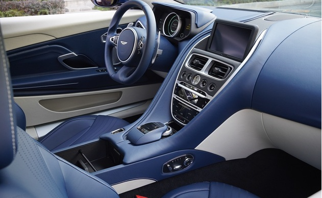 在車尾部分新車同樣延續(xù)了Vantage的部分設(shè)計風(fēng)格,高高翹起的鴨尾下方鑲嵌了貫穿式的LED燈帶,弓形的燈帶有著極高的辨識度,而本身車尾凹凸有致的尾箱蓋有著較高的視覺重心,后保險杠部分超大尺寸的黑色裝飾配合雙邊雙出排氣,顯得個性而動感。