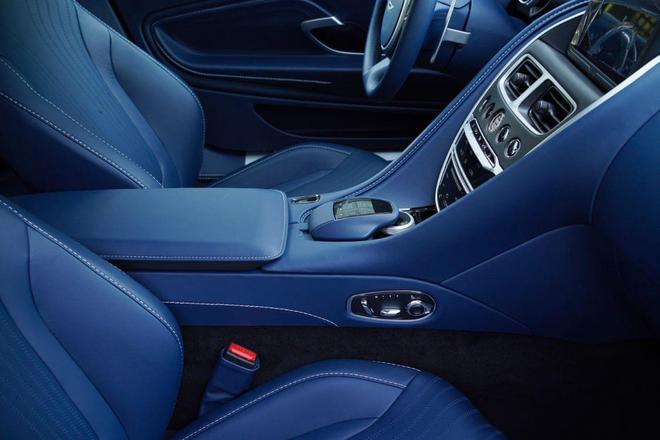 內飾部分,該車整體設計與其它DB11車型無異。但在配色上,新車采用了藍色和白色的兩種淺 色皮質大面積包裹,搭配黑色中控區(qū)域,并在中控區(qū)域內側兩邊有碳纖維裝飾,盡顯高雅。