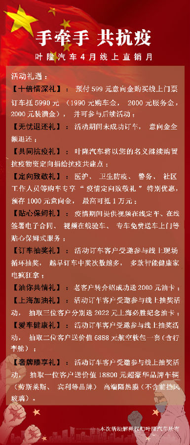 眾志成城,防控疫情。隔離病毒不隔愛!葉隆汽車智能展廳,陪您線上看車禮遇十重大禮~~~~
