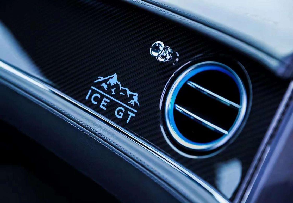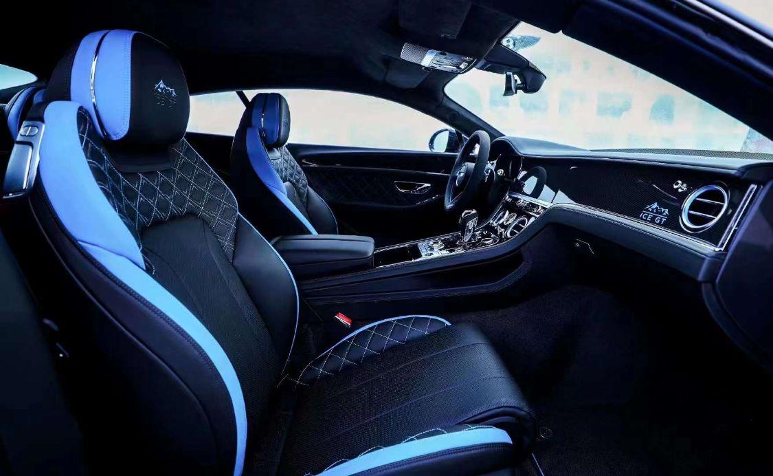 特別版的特點(diǎn)是深黑色主題,幾乎所有的外部元素都是黑色的。前格柵和進(jìn)氣口周圍的鍍鉻飾條,前大燈全部變黑。黑色油漆通過應(yīng)用于前唇、側(cè)裙、輪輞和后擴(kuò)散器的藍(lán)色配色方案進(jìn)一步突出。同樣的黑色和藍(lán)色主題也適用于新的車輪組。車門上印有專屬的藍(lán)色“Ice GT”標(biāo)志,提醒您這不是普通的歐陸 GT。