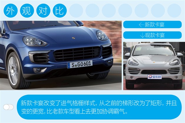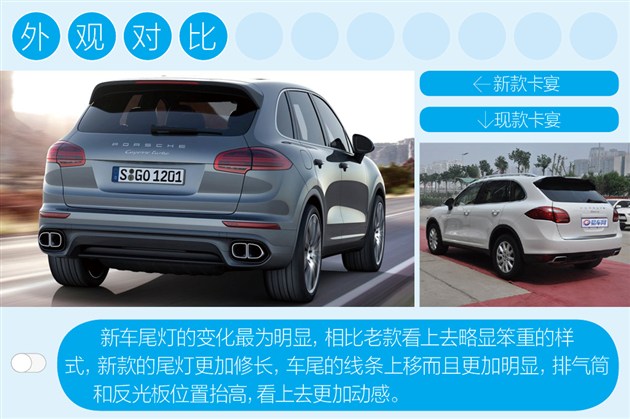 新款卡宴車型的外觀相比老款有著較大的變動,就目前來看這些改動都比較成功,無論還是加大的進(jìn)氣格柵,尾部更加鮮明的線條和造型更加協(xié)調(diào)的尾燈,都更加強(qiáng)烈的突出了運(yùn)動風(fēng)格,更加符合保時捷的品牌魅力。