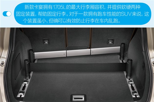 動力方面,Cayenne搭載3.0T V6機(jī)械增壓發(fā)動機(jī),最大功率245kW,最大扭矩440Nm;Cayenne Turbo車型搭載4.8T V8雙渦輪增壓發(fā)動機(jī),最大功率382kW,最大扭矩750Nm;Cayenne S車型搭載3.6T V6 雙渦輪增壓發(fā)動機(jī),最大功率309kW,最大扭矩550Nm。而新款卡宴的插電式混動車型搭載了一臺3.0L V6機(jī)械增壓發(fā)動機(jī)。在純電動模式下?lián)碛?6km的續(xù)駛里程,電機(jī)的最大功率70kW。聯(lián)合輸出306kW的功率。這讓這款插電式混動車型擁有百公里 5.9秒的加速時間,最大243km/h的時速。