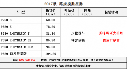 全新攬勝星脈定位在攬勝極光和攬勝運動版之間,新車的推出將填補兩車之間的空白。而車型命名方面,全新攬勝星脈英文名“Velar”源自1969年攬勝原型車,“Velar”一詞來自拉丁語“velaris”,意為“面紗”或“秘密”。上海平行進口車專營店,2017款路虎攬勝星脈,最新價格配置表,了解更多進口車配置報價信息歡迎致電:葉信名車 4009-622-158