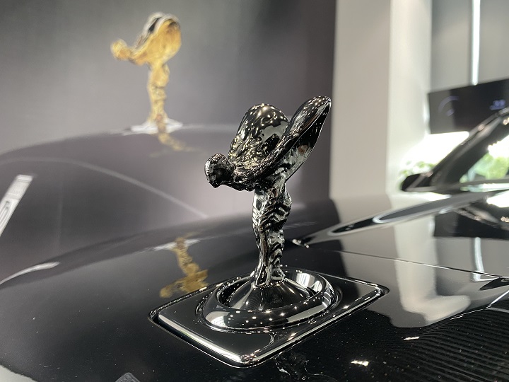 外觀方面,新車將以暗黑風(fēng)格為主,最為顯著的則是車頭的歡慶女神使用了亮黑色的涂裝,搭配勞斯萊斯標志性的直瀑式中網(wǎng)造型并采用鎢鋼色涂裝,這一切設(shè)計手法都使得車頭造型更為方正且厚重,營造出一切的氣場。