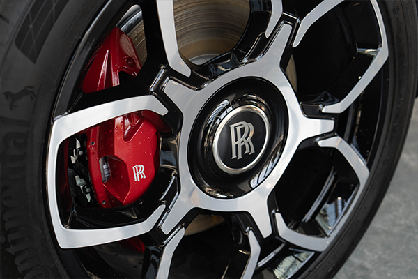 Black Badge庫里南有別于其他版本的特征,是全車除了輪轂和把手為亮銀之外,全身都做黑化處理——就像是女神穿上一襲黑色的長裙,只露出白皙的雙手和腳背。最讓人稱道的是勞斯萊斯把LOGO雙R標顏色反轉:車頭LOGO像女神戴上的黑寶石吊墜,車側LOGO像是女神的同色耳環(huán),而尾部LOGO則像是腰帶上的黑寶石,這一系列搭配無可挑剔。最后再配上大尺寸銀黑輪轂與紅色剎車卡鉗,像是女神穿上了黑面紅底高跟鞋。美出了天際!