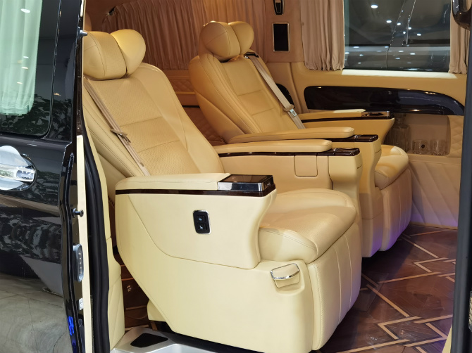 全新奔馳威霆第三排座椅為獨立航空座椅,集成加熱、、旋轉(zhuǎn)等功能。在您的商務(wù)旅途中絕對讓您不覺勞累!地板則是采用了古巴影木的材質(zhì),彰顯尊貴!