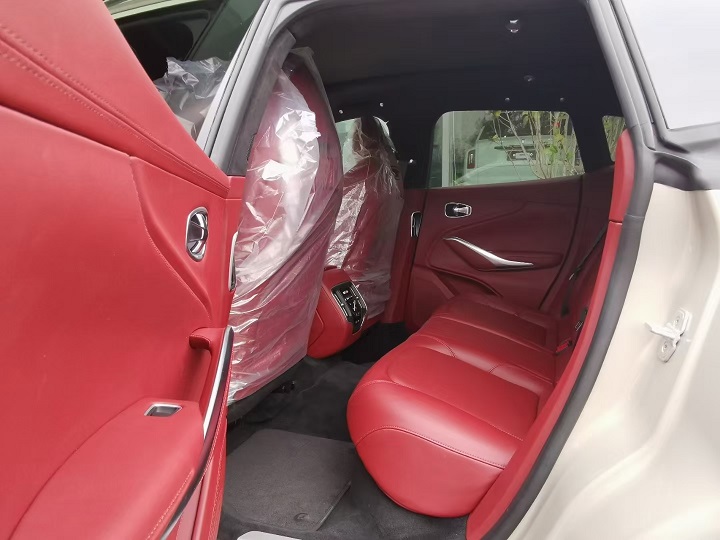 紅色真皮為車內(nèi)座椅的主色調,盡管如此,前排座椅還是非常漂亮,并且具有很好的支撐性和包裹性。前后排座椅均配備加熱和通風功能,這是照顧車內(nèi)乘客的直觀表現(xiàn)。