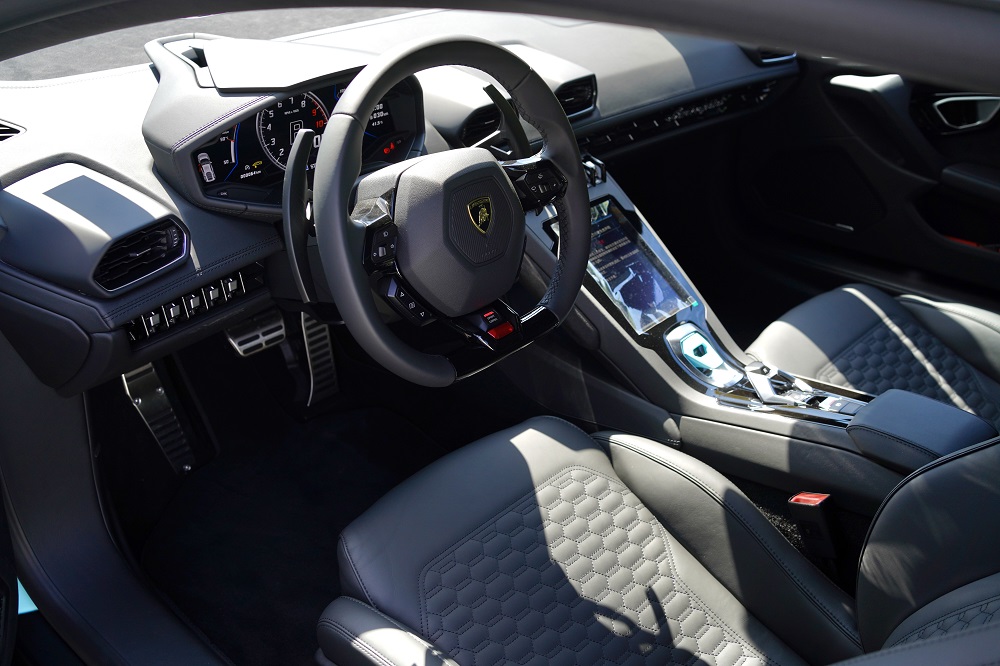 新車的內(nèi)飾采用全黑色設(shè)計(jì),提供標(biāo)配的舒適座椅及可選配的全新運(yùn)動座椅,選配座椅更可選擇EVO運(yùn)動風(fēng)格內(nèi)飾的單色Alcantara或單色真皮材質(zhì)。發(fā)動機(jī)啟動按鈕蓋和頭枕上的蘭博基尼盾形刺繡標(biāo)識可選擇與外觀顏色相同的5種全新熒光色。車輛整體呈現(xiàn)出極具科技感的色彩碰撞效果,為敢于在這個(gè)年輕時(shí)尚的街頭藝術(shù)品中展現(xiàn)自我的人們解鎖更多表達(dá)方式。